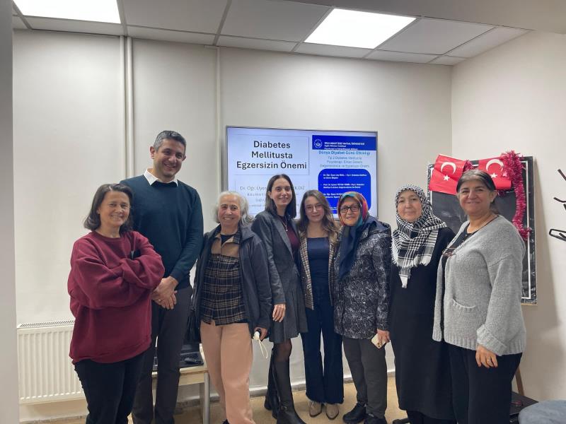 13 Kasım 2025 tarihinde Dünya Diabet Günü vesilesiyle " Tip 2 Diabetes Mellitus’ta Fizyoterapi: Erken dönem Değerlendirme ve Egzersizin Önemi” başlıklı seminer, Fizyoterapi ve Rahabilitasyon Bölümü tarafından, Yaşlı Sağlığı Merkezinde katılımcılarımızın yoğun ilgisiyle gerçekleşti. Seminerde, Dr. Öğr. Üyesi Alp ÖZEL “Tip 2 Diabetes Mellitus ve Genel bilgiler, Prof Dr. Eylem TÜTÜN YÜMİN “Tip 2 Diabetes Mellitus’ta Erken Değerlendirme ve Önemi” ve Dr. Öğr. Üyesi Elif DUYGU YILDIZ “Diabetes Mellitus’ta Egzersizin Önemi” başlıklı sunumlarını yaptılar. Sunum sonunda soru cevap etkinliğinin yapıldığı etkinlikte yaşlı bireylerde diabet yönetimi, erken değerlendirmenin önemi, Diabet yönetiminde egzersizin önemi ve dikkat edilecek hususlar konusunda katılımcılara detaylı bilgilendirme yapıldı. Ek olarak; diabetin günlük yaşam üzerindeki etkilerini azaltmaya yönelik öneriler ve hastaların uyum süreçleri üzerinde duruldu. Katılım sağlayan herkese teşekkür ederiz.