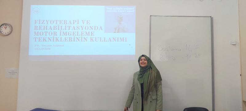 ''Fizyoterapi ve Rehabilitasyonda Motor İmgeleme Tekniklerinin Kullanımı'' başlıklı akademik semineri ile bize bilgilerini aktaran Fzt. Nesime Ayşenur GÜLAYDIN'a teşekkür ederiz.