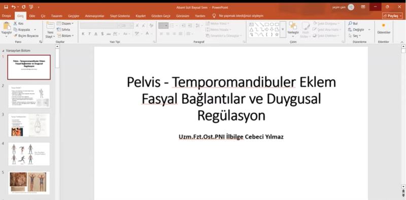 ''Pelvis - Temporomandibuler eklem Fasyal bağlantılar ve Duygusal Regülasyon'' başlıklı akademik semineri ile bize bilgilerini aktaran Uzm.Fzt.Ost.PNI İlbilge Cebeci YILMAZ'a teşekkür ederiz.