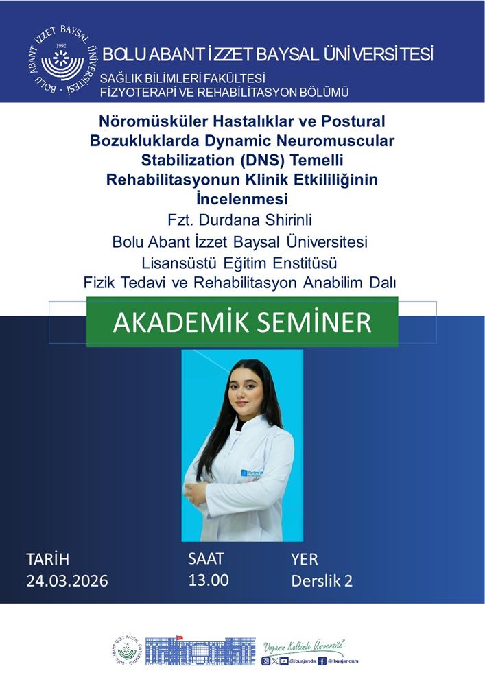 "Nöromüsküler Hastalıklar ve Postural Bozukluklarda Dynamic Neuromuscular Stabilization (DNS) Temelli Rehabilitasyonun Klinik Etkililiğinin İncelenmesi" Akademik Semineri